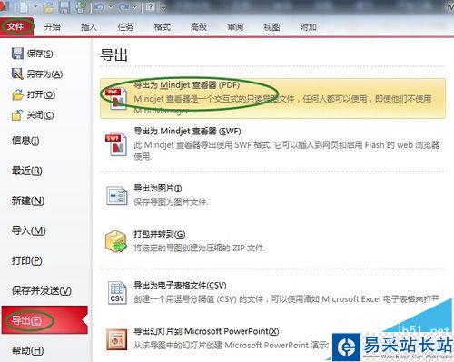2、點擊文件,選擇導(dǎo)出,選擇導(dǎo)出為Mindjet 查看器(PDF)。