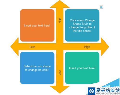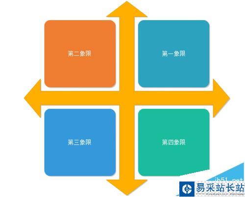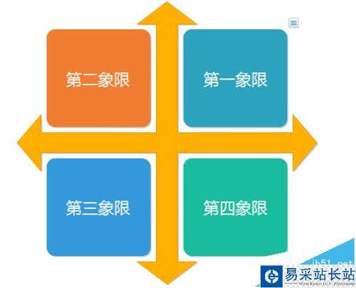 5、修改四個(gè)正方形內(nèi)部的內(nèi)容,分別改為第一象限、第二象限、第三象限和第四象限,如下圖所示:
