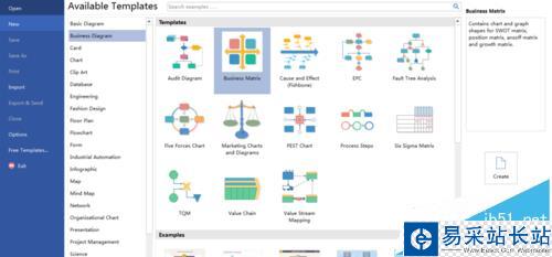 2、在模板菜單項(xiàng)選擇第二個(gè)“Business Matrix”,并單擊“Create”,如下圖所示: