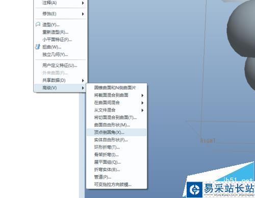 8、如果覺得曲面的尖點(diǎn)不好看,可以為其增加R角,插入-高級-頂點(diǎn)倒R角;