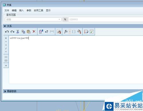 6、添加表達(dá)式,工具-關(guān)系式,然后輸入sd3=8+trajpar*80;