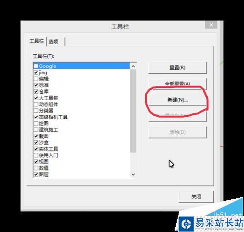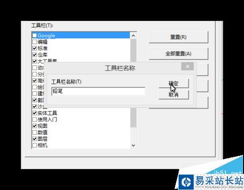 3、出了系統中原有的工具欄,大家還可以根據自己的習慣創建自定義的工具欄,首先像圖中一樣點擊“新建”,然后給工具欄起個名字。這里我建一個鉛筆工具欄做示范。起完名按確定后就會出現一個名為“鉛筆”的空白工具欄。