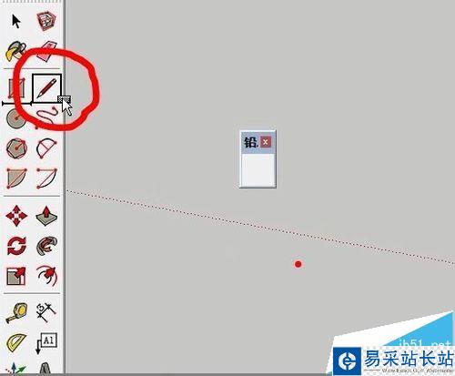 6、如果工具欄顯示在繪制窗口中會非常影響我們的操作的。用鼠標點擊工具欄的邊框按著不放,然后拖拽就可以移動工具欄,把工具欄移動到圖中畫紅圈的地方工具欄就會固定在此。這樣就不會影響我們的操作。