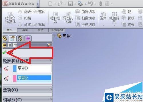 3、要使用掃描命令。至少需要兩個要素,即一個掃描輪廓和一個掃描路徑