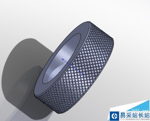 solidworks中沒有直接生成滾花的命令,所以只能通過間接的方法生成滾花,如下圖,,接下來小編通過用拉伸切除命令和圓周陣列命令來生成滾花。