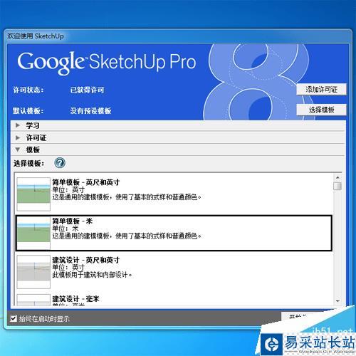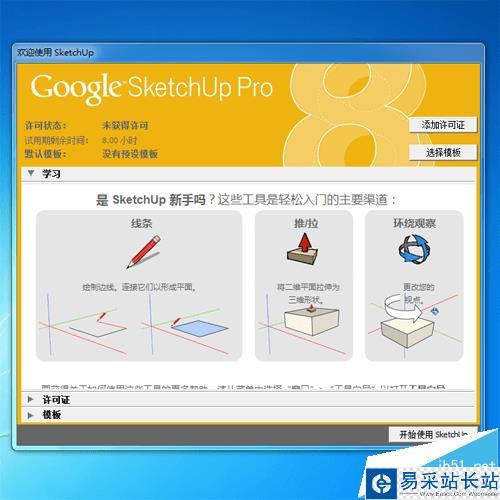 3、再次進入sketchup,看以看到歡迎界面是藍色的,說明已經激活可以正常使用了。