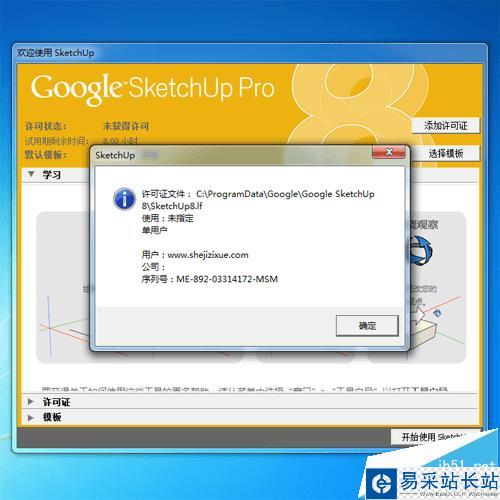 8、打開sketchup看到背景是黃色的,說明還沒有激活。到這里安裝成功,接下來介紹如何注冊破解。