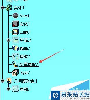 2、多重提取完成后,該零件的結構樹上會出現一個多重提取,右鍵復制即可
