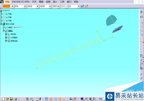 4、點擊進入草圖模式(注意此時草圖面需要和曲線1是平行的),選中曲線1,命令欄中點擊投影3D元素,然后此時曲線1就被投影到草圖中,可以自由編輯了。