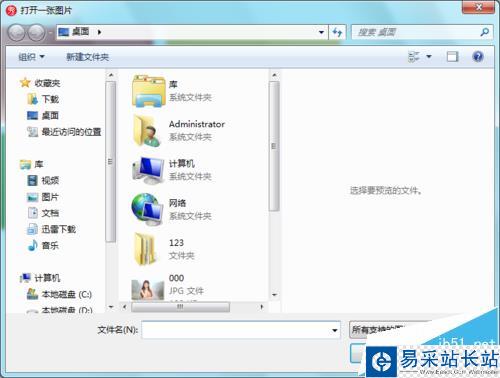 3、點擊打開選項后,彈出打開一張圖片對話框,如圖所示: