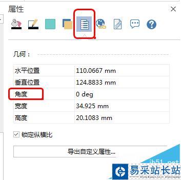 2、或者在開始菜單的排列一欄,點擊右下角的箭頭(或者按F4鍵)顯示屬性對話框,直接輸入你需要的旋轉角度。