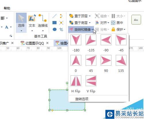 1、在開始菜單中點擊旋轉和鏡像按鈕,然后在彈出的對話框中選擇指定角度。