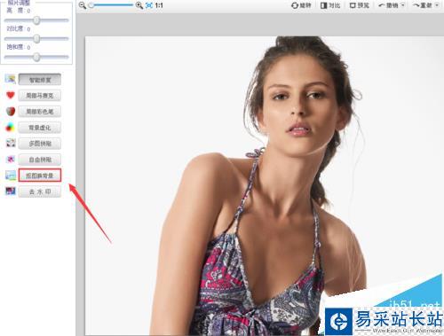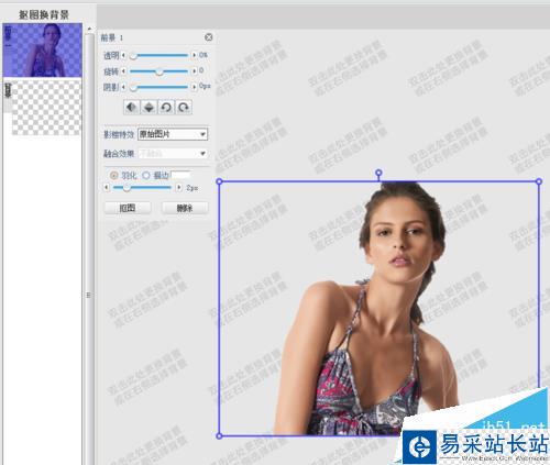 6、點擊摳圖換背景選項,進入摳圖操作模式,如圖所示: