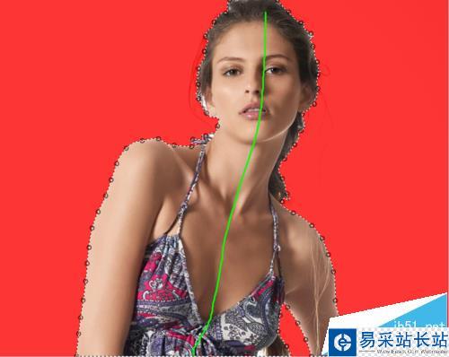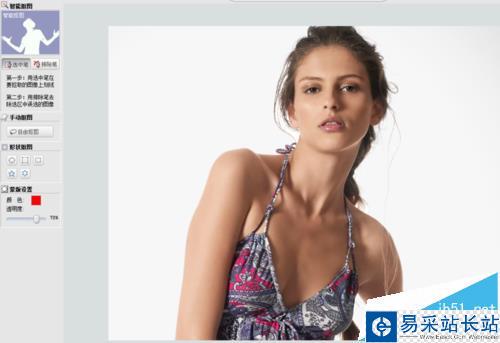 9、在摳圖操作界面里找到摳圖筆,畫出如圖所示的線條,其他部分則為紅色,如圖所示: