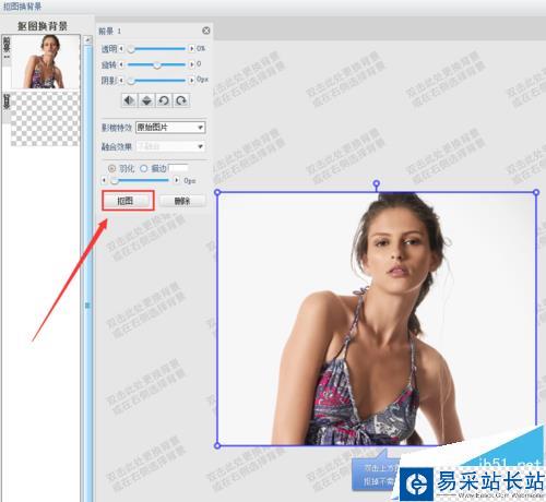 8、點擊摳圖選項,進入摳圖操作界面,如圖所示: