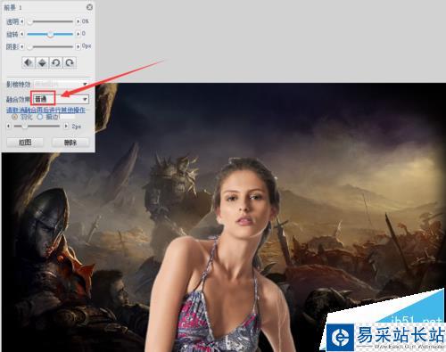 14、在這個界面內(nèi)找到融合模式選項,將融合模式調(diào)節(jié)為普通模式,如圖所示: