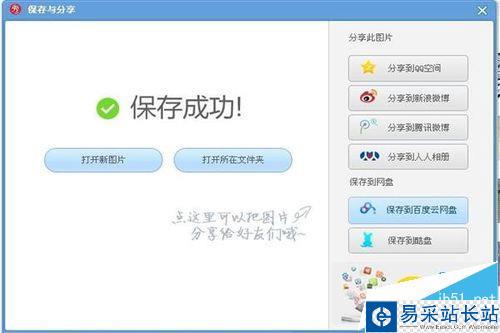 8、我們點(diǎn)擊“確定”,返回到美化圖片頁(yè)面,我們?cè)陧?yè)面右上角找到“保存與分享”,如下圖所示