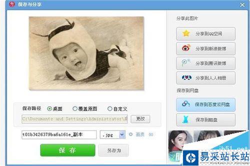 10、我們選好保存路徑后,點(diǎn)擊“保存”,彈出“保存成功”的頁(yè)面,一張古典素描圖片就制作完成了,有興趣的不防來(lái)試試吧!
