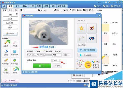 8、選擇”動(dòng)態(tài)圖片“和”gif“格式,路徑和名稱可以更加需求修改。