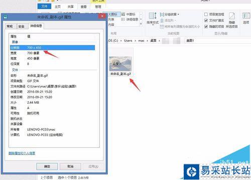 9、保存后可以到剛才保存的路徑去查看圖片的參數(shù),尺寸大小變成了修改后的700x450。