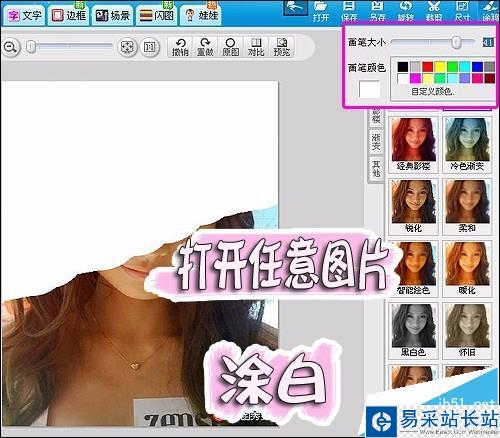 4、將倒影部分做好后,把它保存起來作為素材備用。然后重新打開一張豎狀圖片,用涂鴉筆刷白,做成背景。