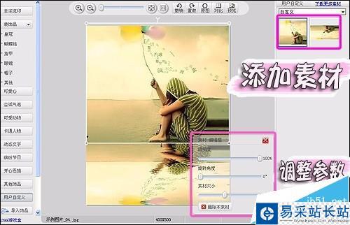 5、然后進入“飾品”菜單下,將原圖和倒影的圖片導入到“用戶自定義”中。
