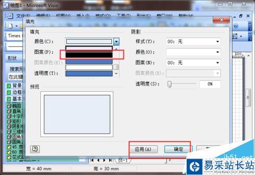 4、設置矩形:在填充一欄中選中“黑色”,然后單擊確定;具體操作如下圖;