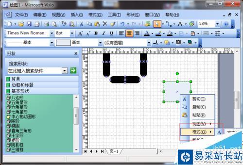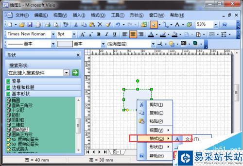 2、編輯矩形:選中矩形,單擊鼠標右鍵,在下拉菜單中找到“格式”-“填充”;