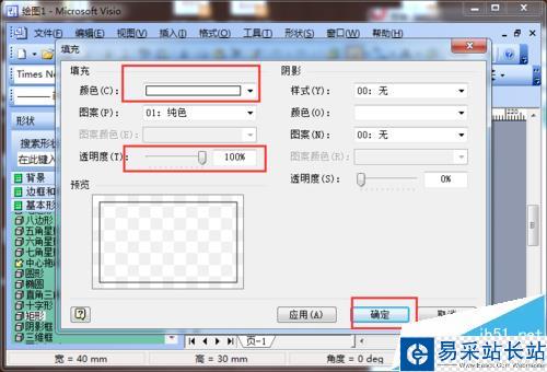 3、設置矩形:將顏色配置成“無色”,經透明度設置為“100%”;