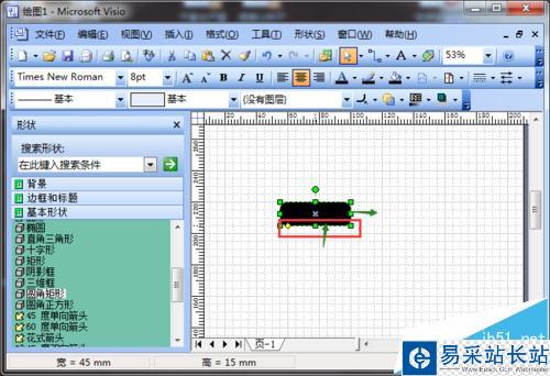 5、調整矩形大小:如圖所示,單擊矩形的左側和上下測,進行調整矩形大小;