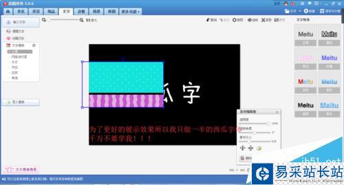 4、各位寶寶們這是最后一步了堅持,點擊美化,進入美化界面,目光轉向右方編輯欄,點擊基礎,選擇反色,這樣西瓜字就做好了!!!這樣的字體是不是感覺萌萌噠!為完整西瓜字體效果圖