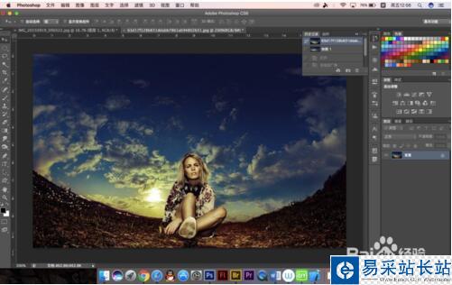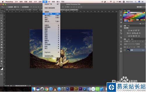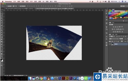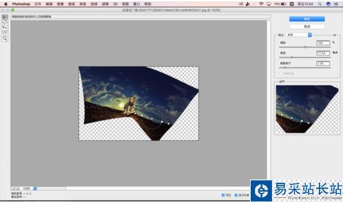 7.我們可以在動作面板中建立快照,來將處理過后的照片與之前的對比一下,可以看到這張照片并不適合拉成平面圖,所以處理照片的時候應該根據圖片所需要的藝術效果來決定怎么操作