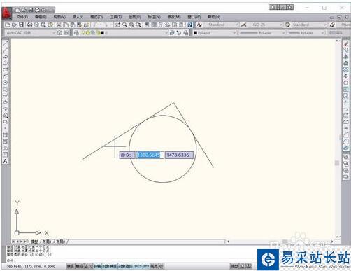 3.點擊上方工具欄,繪圖--圓--相切 相切 半徑
