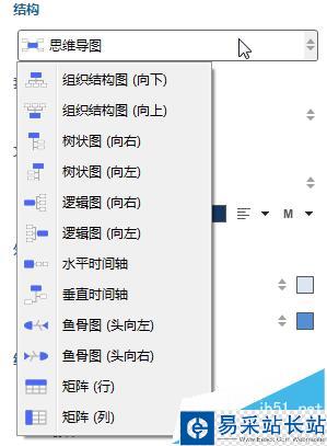 3、結構。該屬性可以更改主題的視圖結構,增長方向,包括樹狀圖、魚骨圖、時間軸等。子主題可以結合自己的實際情況來調整為其他的“結構”,即可以多個導圖結構組合使用。