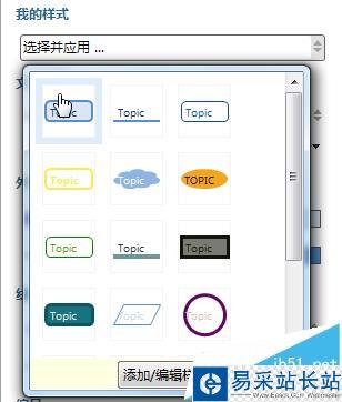 4、我的樣式。其中現有的主題樣式,用戶可以直接點擊使用。很多小伙伴經常問,主題下面的那條線怎么弄,其實就是一種下劃線主題樣式,這里就可以選擇。當然如果它的顏色,線寬不滿意,你可以在“外形&邊框”、“線條”這兩個屬性中再做修改。再不然,點擊“添加/編輯樣式”,自己新建一個滿意的樣式。