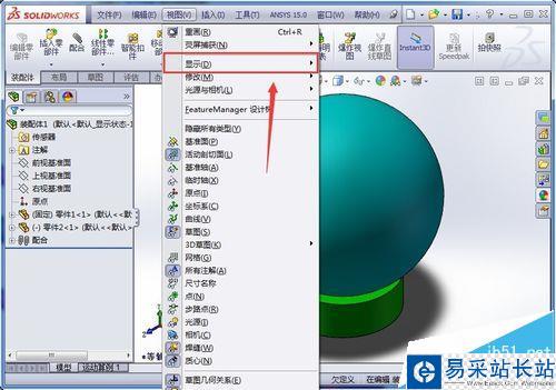 2、在彈出的下拉菜單中單擊“顯示‘,如下圖所示: