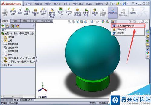 用SolidWorks建模時(shí),不論是零件模型還是裝配體模型,都可能會(huì)遇到模型下有陰影的情況(如下圖所示),模型陰影的存在對(duì)動(dòng)畫(huà)仿真和截圖等的效果都會(huì)存在影響,這時(shí)我們可以采用以下的方法將模型陰影去掉。