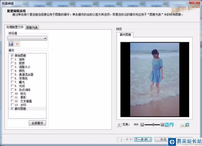 5、在打開的 批量編輯 對話框中,左邊的列表時可以看到有很多操作方式,