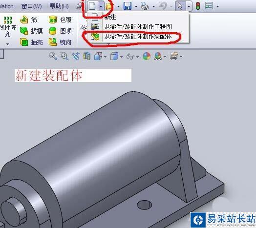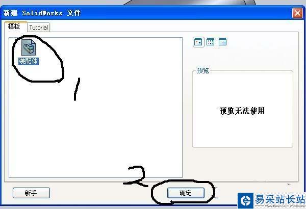 2、選擇新建,然后選擇裝配體制作零件。點擊確定。彈出新建裝配體對話框,選擇確定。