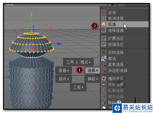 7、按V鍵,彈出菜單點選擇再點反選;這時,反過來,把下一段的所有點給選中了。
