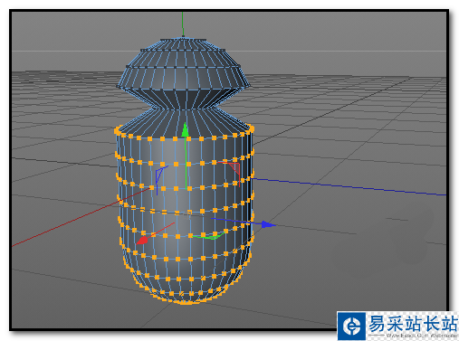 6、按下數字0,框選工具;把圓柱上方這一段所有點全選中,如圖中所示。轉動下視圖檢查下有哪些點漏選或多選的;