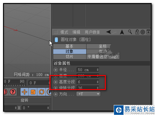 1、創建一個圓柱體;在屬性面板的,對象選項中,把“高度分段”設置為6