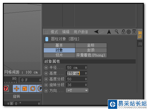 1、創建圓柱模型;在屬性面板這里,點開封頂選項,把“封頂”的對勾取消掉。現在,圓柱里面是空的,兩端相通,成了管道模型;再點開對象選項,把高度分段設置為50;把高度設置為370