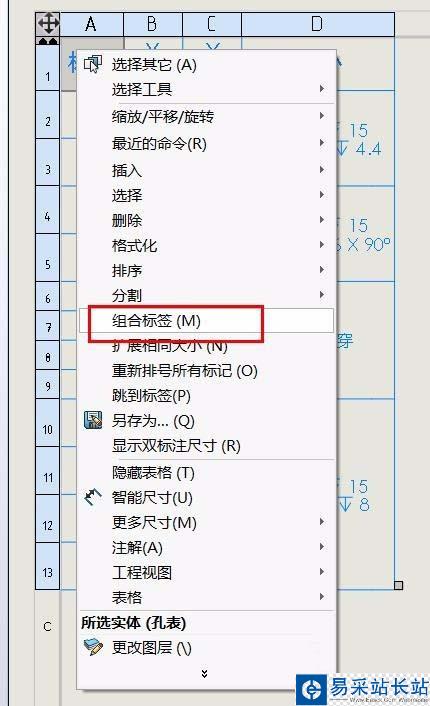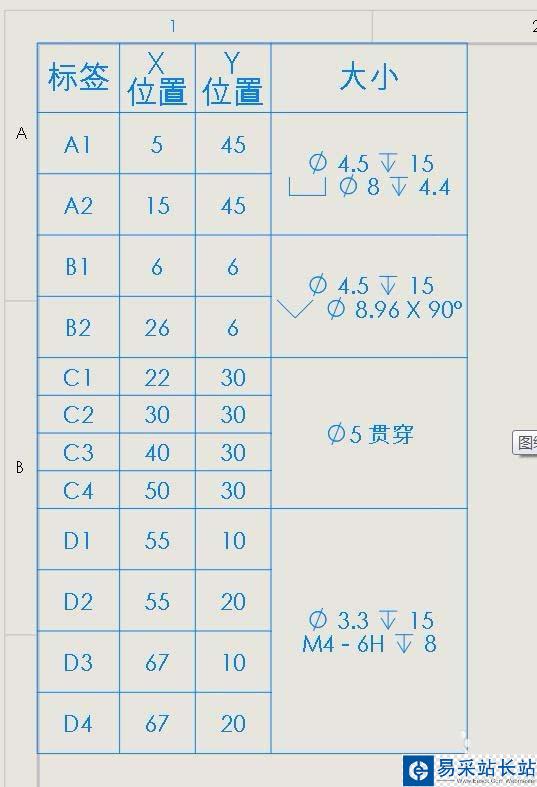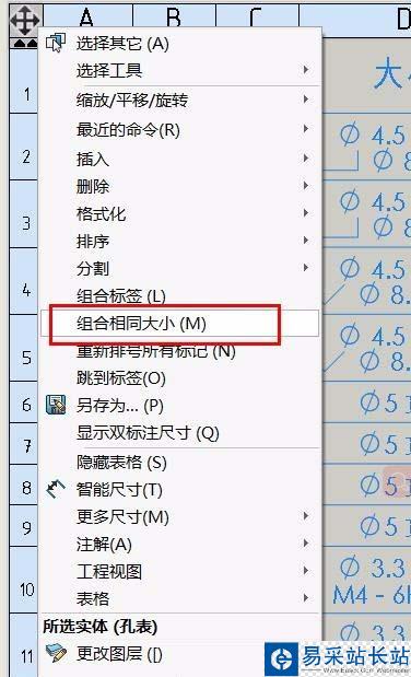 6、右擊表格,選擇組合相同大小,那么相同大小的孔就組合在了一起。最后的效果圖如下圖
