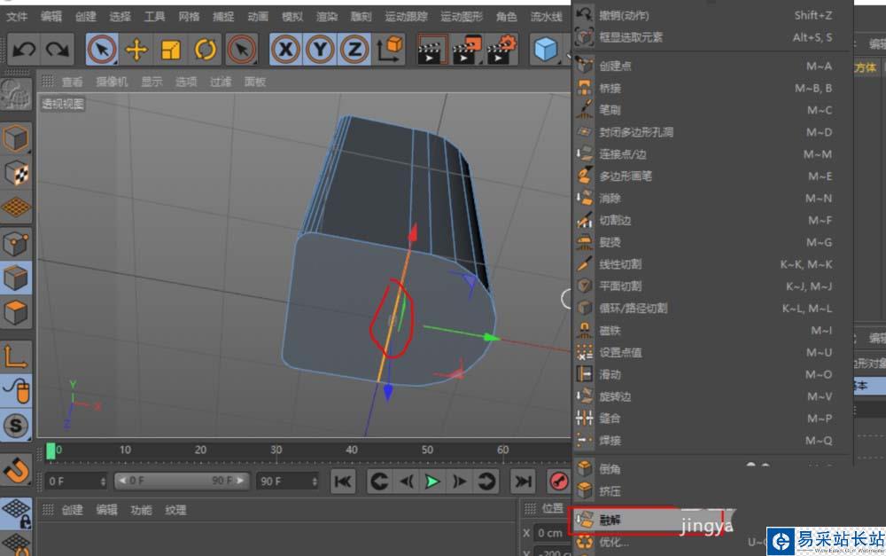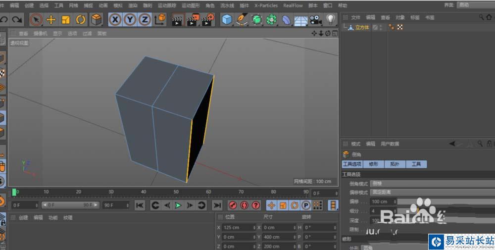 2、用環(huán)狀選擇(UB),為立方體的一組邊加一條中間線。