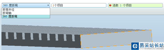 5、折彎形式欄選擇第三個“360度折彎”,后面的兩個框中分別選擇兩個端面,即輪廓截面所在平面,其設置過程及預覽效果如下圖所示。