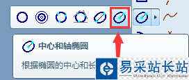 1、點擊草繪功能區的“中心和軸橢圓”按鈕,下圖所示。