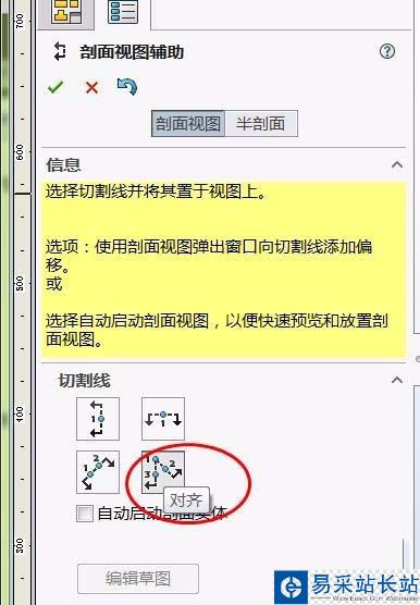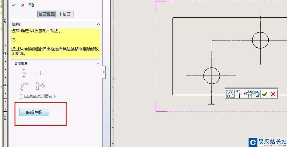 6、對剖切線進行草圖編輯,編輯方式和普通的繪制草圖一致