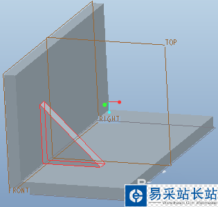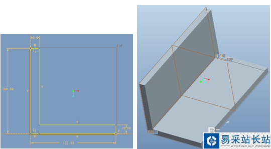 1、準備工作。筋要在現(xiàn)有實體曲面上進行,例如先采用拉伸法形成如下L形實體,尺寸自定。