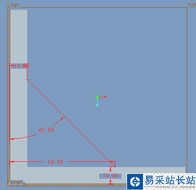 5、此時進入草繪環(huán)境,創(chuàng)建如下的一條斜線,點擊√退出草繪界面。